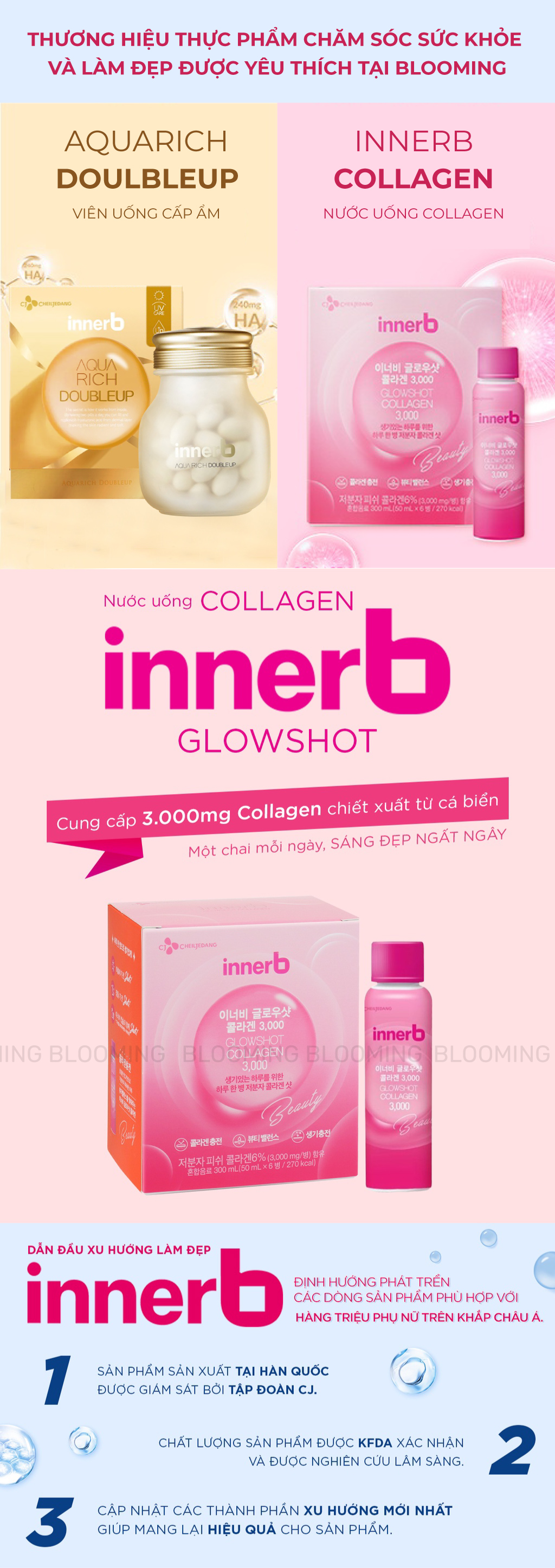 Nước Uống Innerb Glowshot Collagen Căng Mịn Sáng Da 300ml (50ml x 6 Chai)